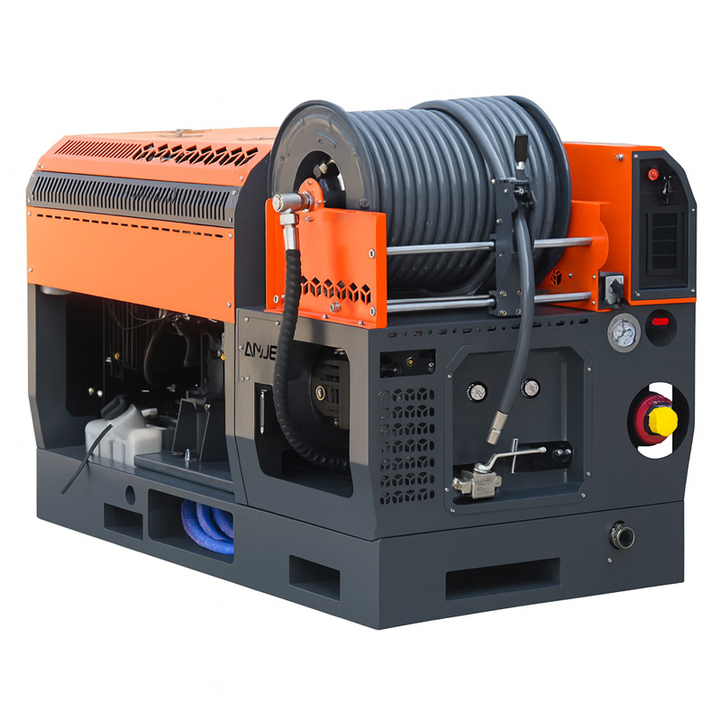 1. Robust performance: Equipped with a reliable 54.4HP water-cooled cooling engine for superior reliability and service life, it is ideal for industrial, municipal and commercial plumbing applications. Easily cope with municipal engineering pipes, concrete pipes, HDPE double-wall bellows, ground stormwater drainage, large supermarket drainage pipes, shopping mall drainage pipes, stormwater systems. The options are 2100PSI128lpm or 4350psi60lpm.